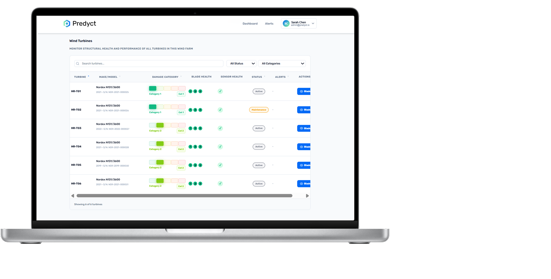 No wiring or integration required. Blade data transmits wirelessly to the cloud.
